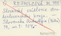 REJHOLCOVÁ M. 1971 Slovanské osídlenie stredoslovenského kraja.