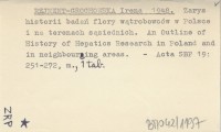 REJMENT-GROCHOWSKA Irena 1948 Zarys historii badań flory wątrobowców w Polsce i na terenach sąsiednich. An Outline of History of Hepatics Research in Poland and in neighbouring areas.