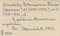 Acta Societatis Botanicorum Poloniae (Warszawa) , 21 (1951-1952), nr 3: 435-441, il. Po polsku ze streszczeniem angielskim. REC: STARMACH K. 1957