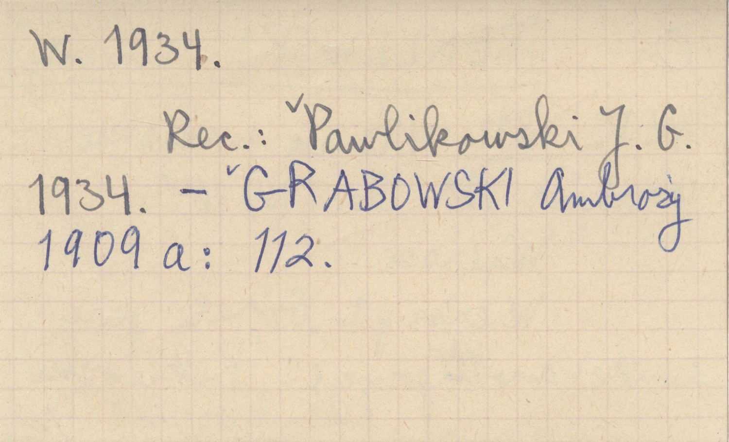 Kraków , 190 s., 16°. Wiersze. Wiersz pt. "Górale" przedrukowano jako pozycję: Reklewski W. 1934 REC: PAWLIKOWSKI J. G. 1934 ; GRABOWSKI Ambroży 1909 a: 112 ;