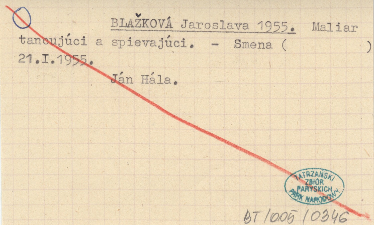 Smena, 21.I.1955. Ján Hála.