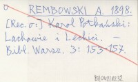 REMBOWSKI A. 1898 Karol Potkański: Lachowie i Lechici.