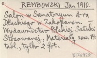 REMBOWSKI Jan 1910 Salon w Sanatoryum d-ra Dłuskiego w Zakopanem.