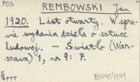 REMBOWSKI Jan 1920 List otwarty. W sprawie wydania dzieła o sztuce ludowej.
