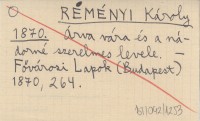 REMÉNYI Károly 1870 Árva vára és a nádorné szerelmes levele.