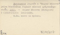 Rendszeres jegyzék a "Magyar Minerva" jelen kiadásában foglalt múzeumi gyüjteményekről. 1915