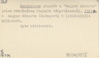 Rendszeres jegyzék a "Magyar Minerva" jelen kiadásában foglalt könyvtárakról. 1915 a