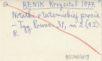 RENIK Krzysztof 1977 Notatki o taternickiej prozie.