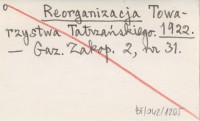 Reorganizacja Towarzystwa Tatrzańskiego. 1922