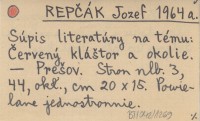REPČÁK Jozef 1964 a Súpis literatúry na tému: Červený kláątor a okolie.