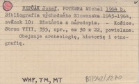 REPČÁK Jozef POTEMRA, Michal. ; 1964 b Bibliografia východného Slovenska 1945-1964, zväzok 10: História a národopis.