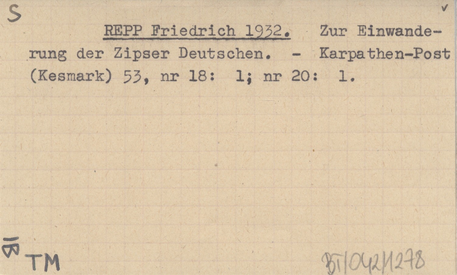 REPP Friedrich 1932 Zur Einwanderung der Zipser Deutschen.
