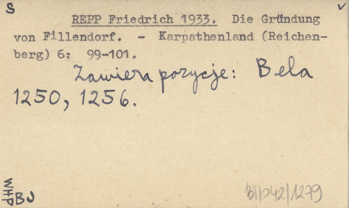 Karpathenland (Reichenberg) , 6: 99-101. Zawiera pozycje: Bela 1250, 1256.