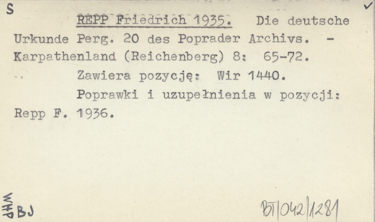 Karpathenland (Reichenberg) , 8: 65-72. Zawiera pozycję: Wir 1440. Poprawki i uzupełnienia w pozycji: Repp F. 1936.