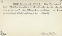 REPP Friedrich 1935 b Zum Protokoll der "Confraternitas visitationis Marie virginis gloriose" des Käsmarker Archivs.