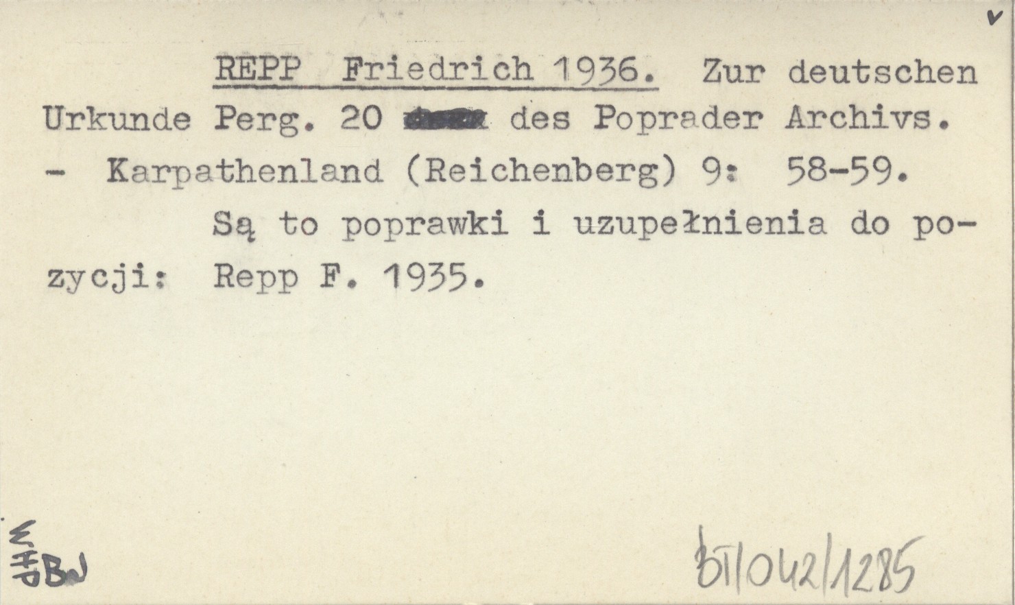 REPP Friedrich 1936 Zur deutschen Urkunde Perg. 20 des Poprader Archivs.