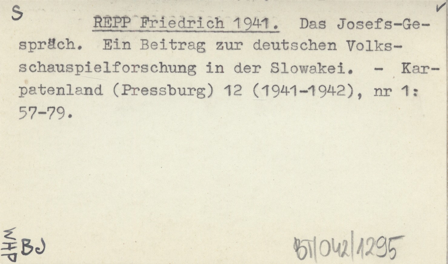 REPP Friedrich 1941 Das Josefs-Gespräch. Ein Beitrag zur deutschen Volksschauspielforschung in der Slowakei.