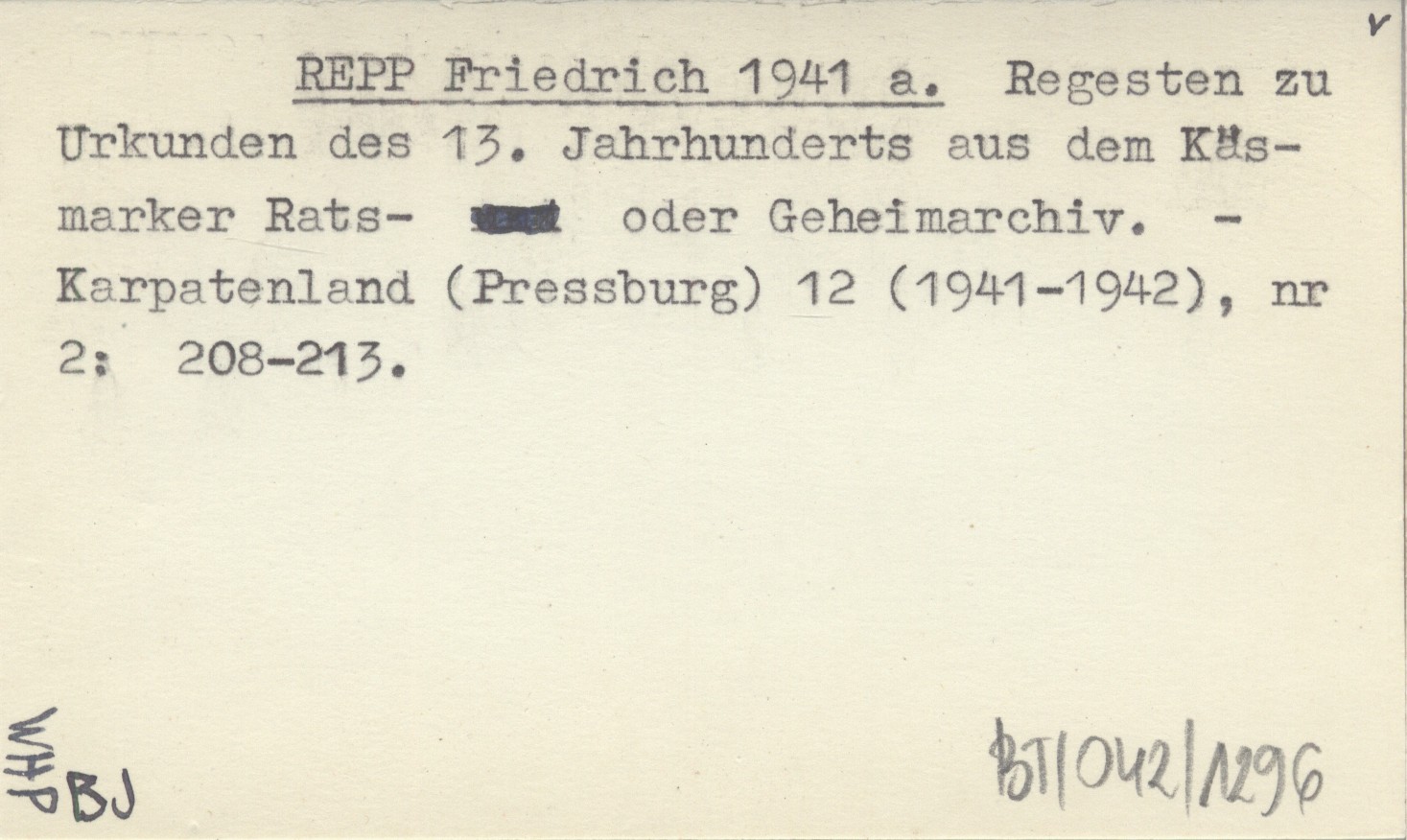 REPP Friedrich 1941 a Regesten zu Urkunden des 13. Jahrhunderts aus dem Käsmarker Rats- oder Geheimarchiv.