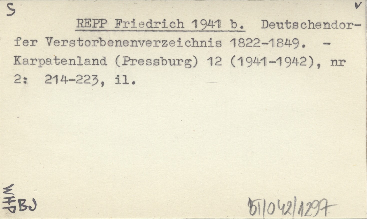 REPP Friedrich 1941 b Deutschendorfer Verstorbenenverzeichnis 1822-1849.