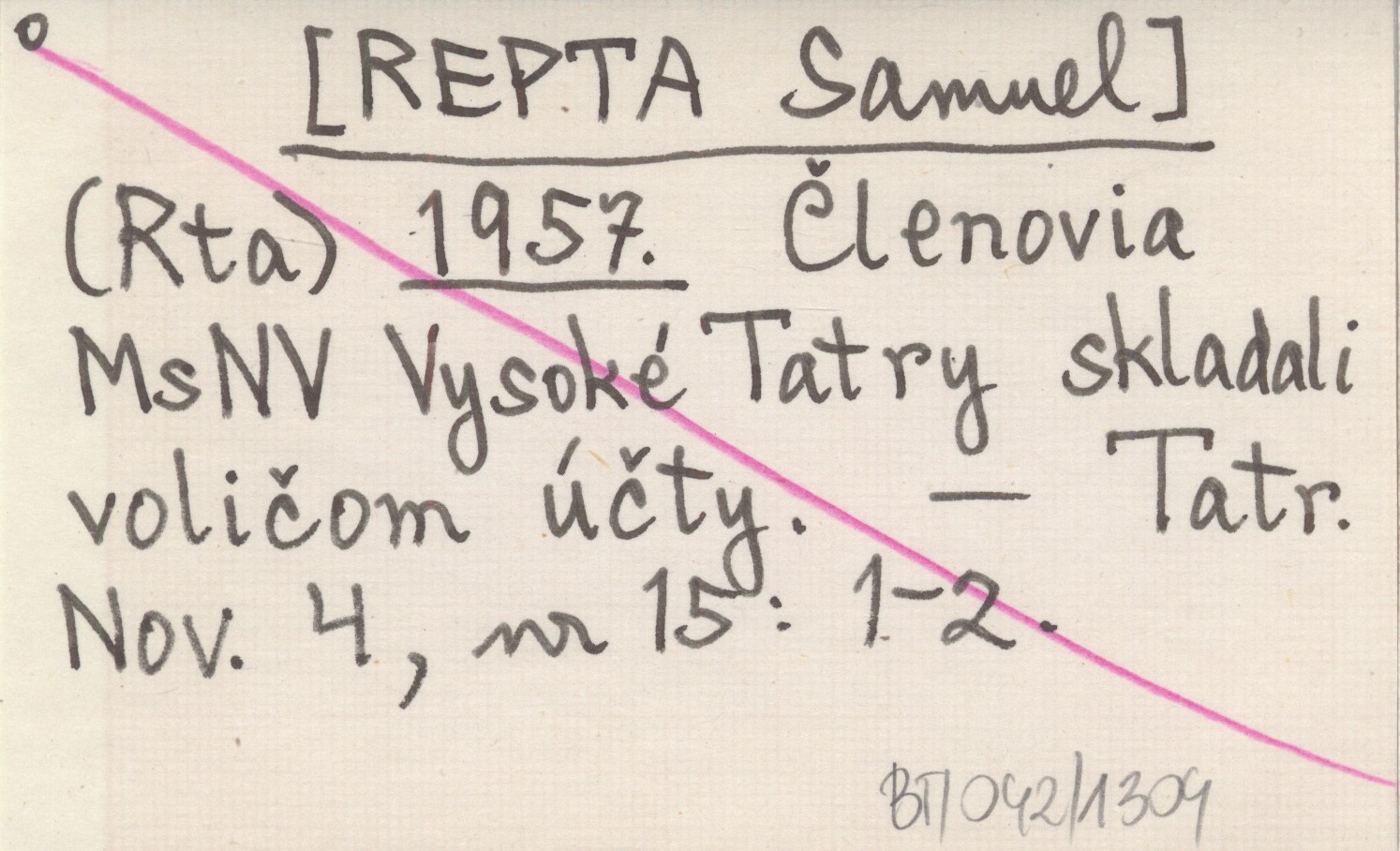 (Rta) [REPTA Samuel] 1957 Členovia MsNV Vysoké Tatry skladali voličom účty.