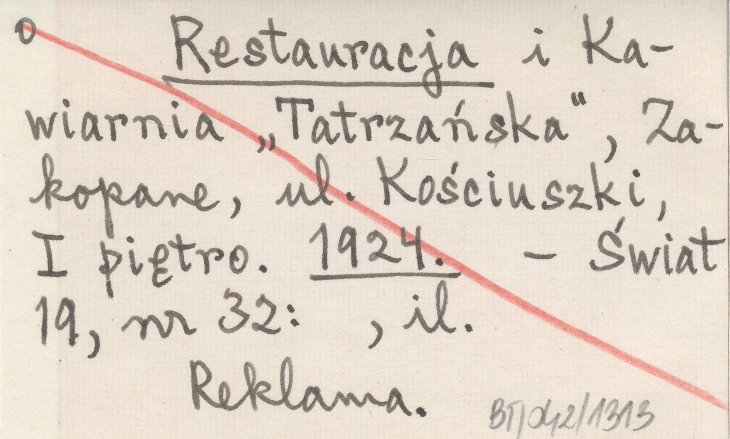 Restauracja i Kawiarnia "Tatrzańska", Zakopane, ul. Kościuszki, I piętro. 1924