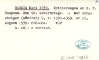 BLODIG Karl 1939 Erinnerungen an E. T. Compton. Zum 90. Geburtstage.