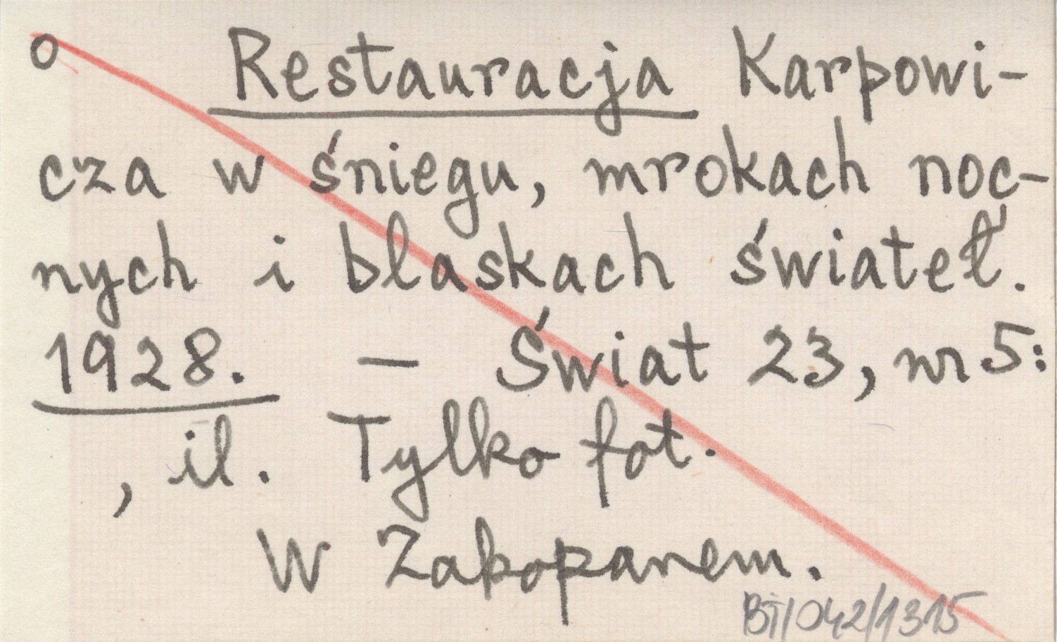 Restauracja Karpowicza w śniegu, mrokach nocnych i blaskach świateł. 1928