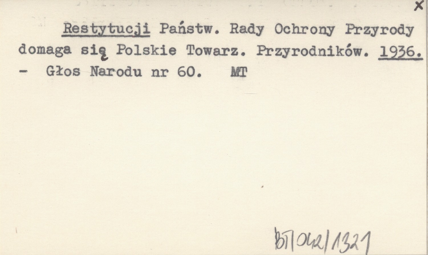Restytucji Państw. Rady Ochrony Przyrody domaga się Polskie Towarz. Przyrodników. 1936