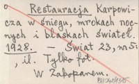 Restauracja Karpowicza w śniegu, mrokach nocnych i blaskach świateł. 1928