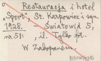 Restauracja i hotel "Sport", St. Karpowicz i syn. 1928