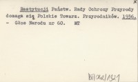 Restytucji Państw. Rady Ochrony Przyrody domaga się Polskie Towarz. Przyrodników. 1936