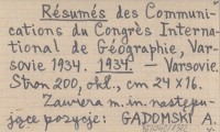 Résumés des Communications du Congrés International de Géographie, Varsovie 1934. 1934