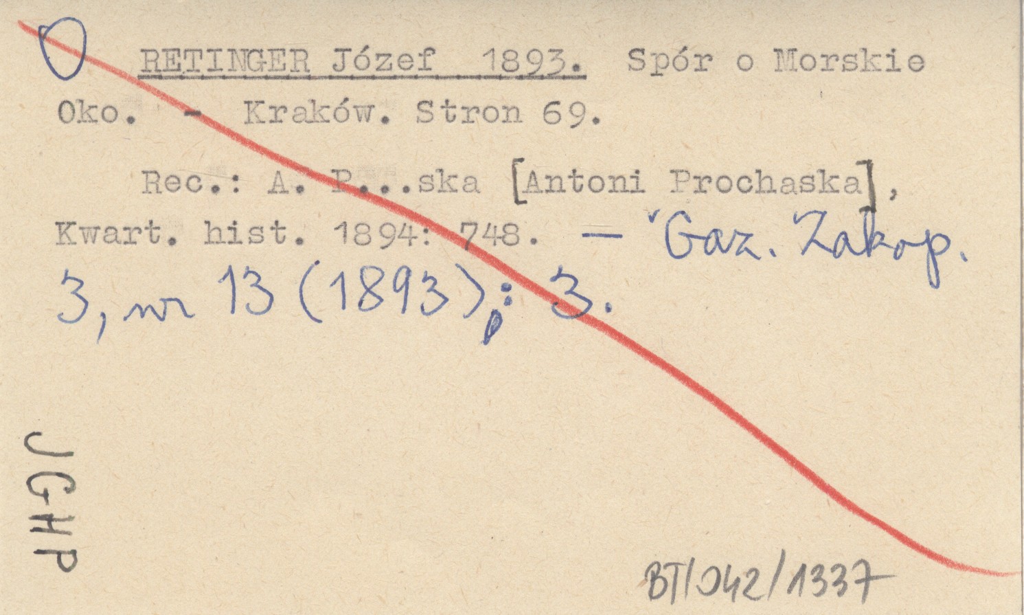 Kraków , 69 s. REC: A. P...SKA [Antoni PROCHASKA], Kwart. hist. 1894: 748 ; Gaz. Zakop. 3, nr 13 (1893): 3 ;