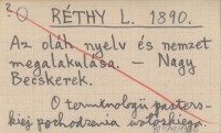 RÉTHY L. 1890 Az oláh nyelv és nemzet megalakulása.