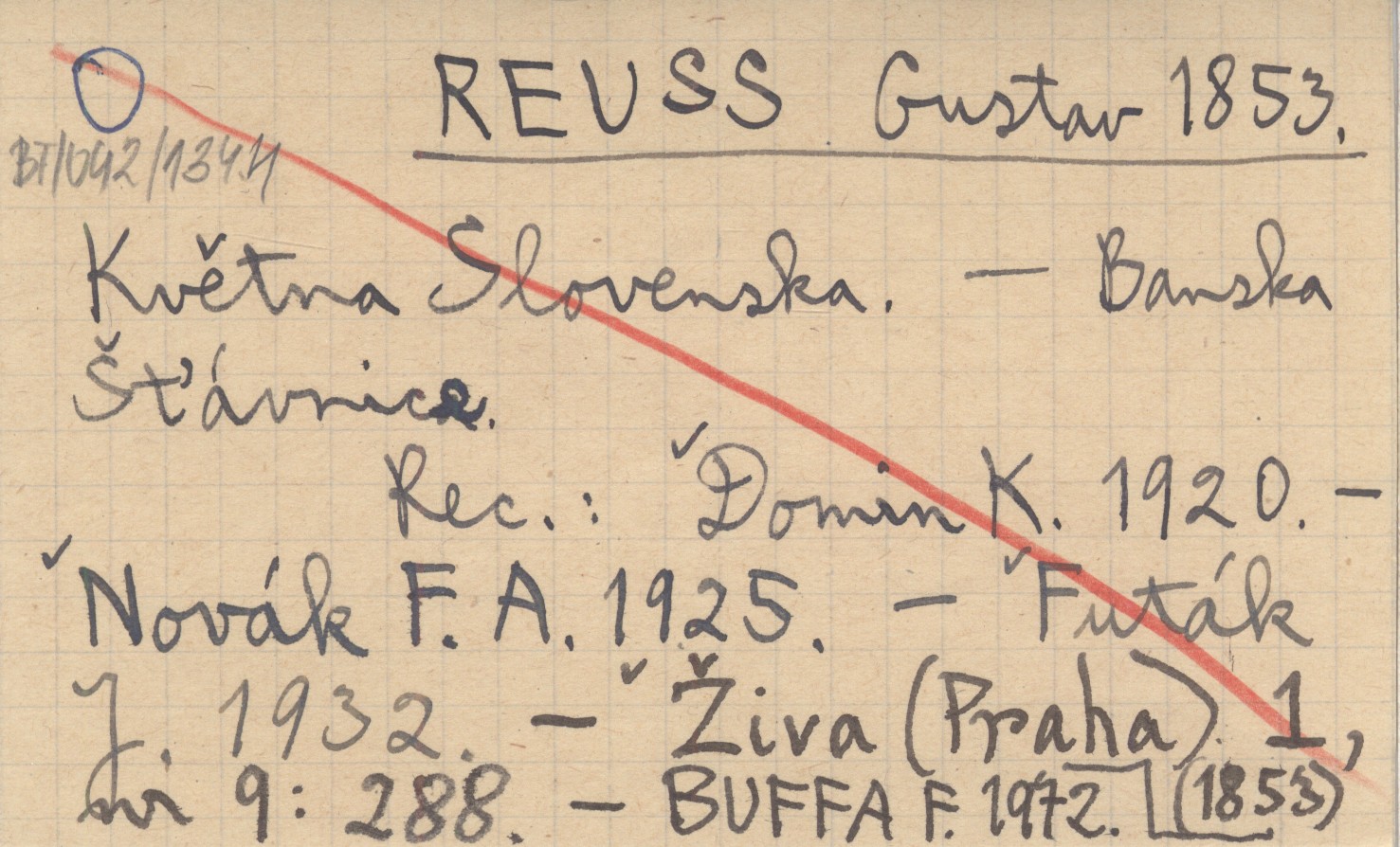 Banská Štávnica , LXXV s., 497, okł., 22x14 cm. REC: DOMIN K. 1920 ; NOVÁK F. A. 1925 ; FUTÁK J. 1932 ; Živa (Praha) (1853) 1, nr 9: 288 ; BUFFA F. 1972 ;
