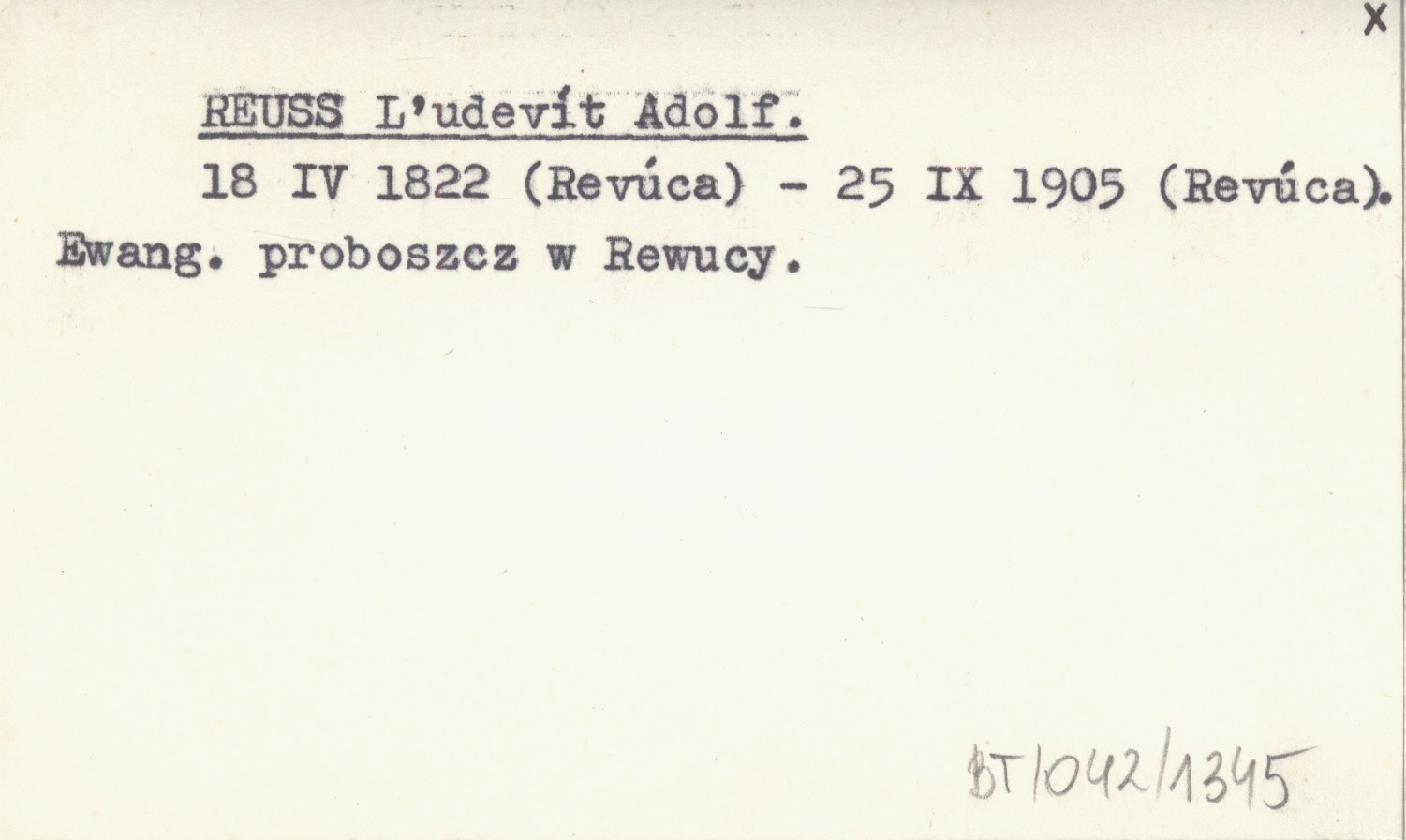 18 IV 1822 (Revúca) - 25 IX 1905 (Revúca). Ewang. proboszcz w Rewucy.