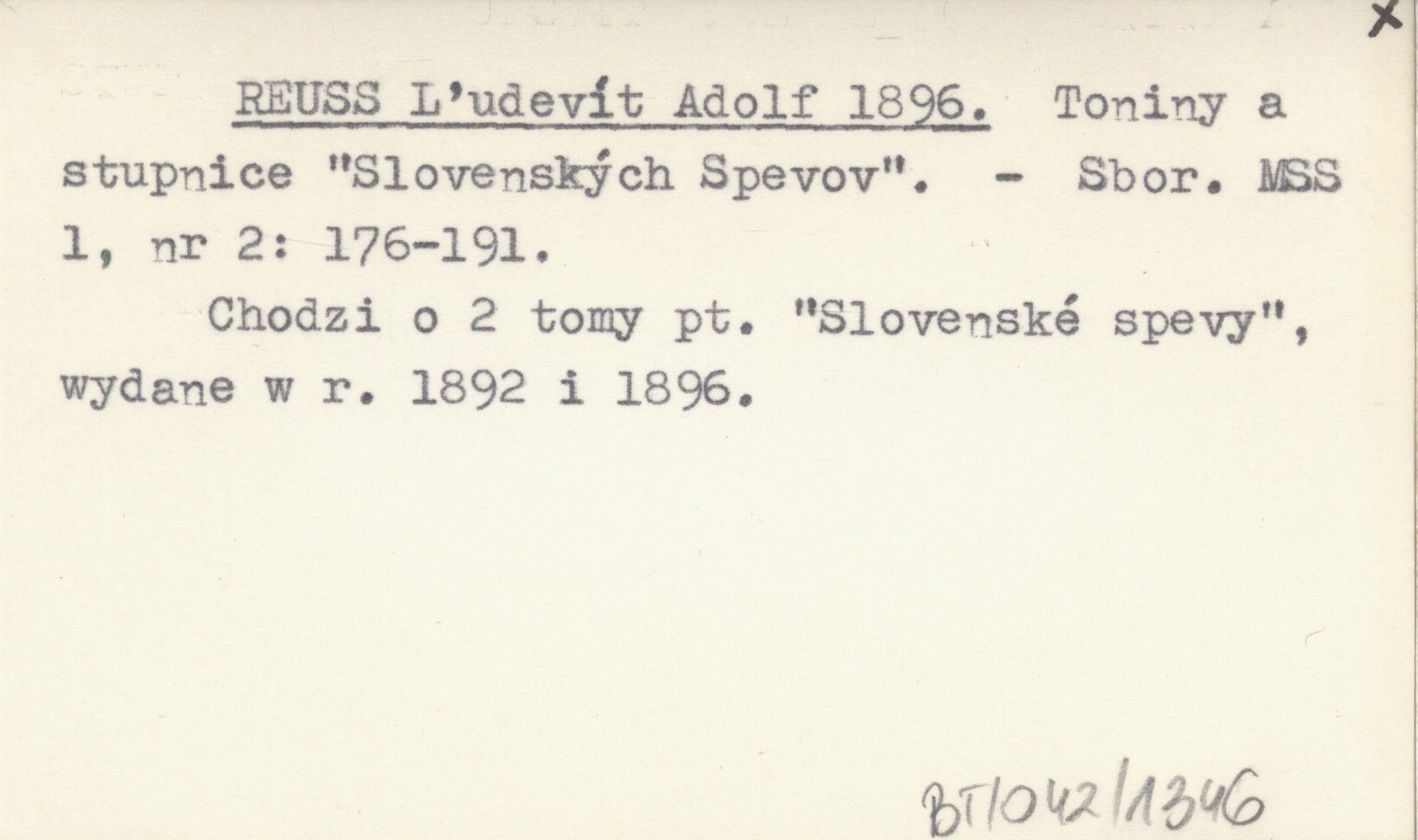 Sbor. MSS, 1, nr 2: 176-191. Chodzi o 2 tomy pt. "Slovenské spevy", wydane w r. 1892 i 1896.