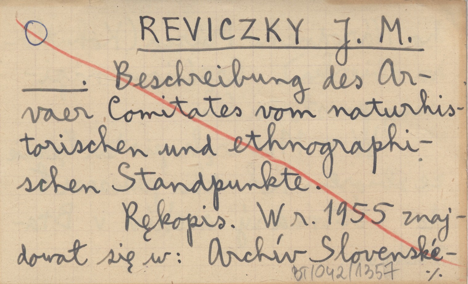 REVICZKY J. M. Beschreibung des Arvaer Comitates vom naturhistorischen und ethnographischen Standpunkte.
