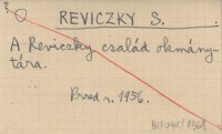 REVICZKY S. przed 1956 A Reviczky család okmánytára.