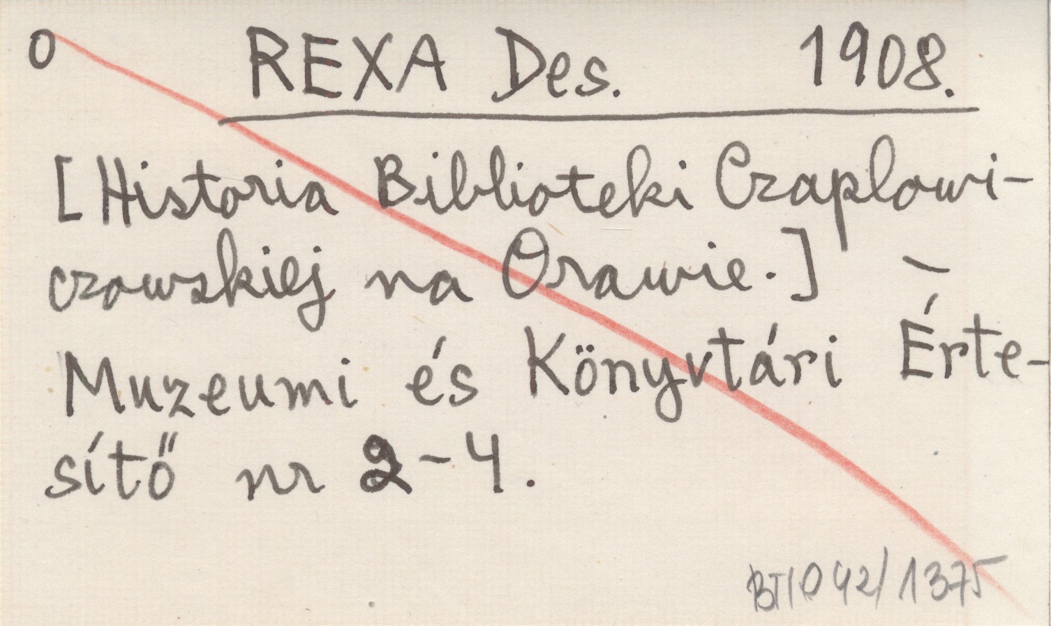 REXA Des. 1908 [Historia Biblioteki Czaplowiczowskiej na Orawie].