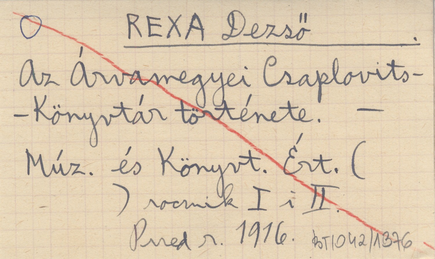 REXA Dezső przed 1916 Az Árvamegyei Csaplovits-Könyvtár története.