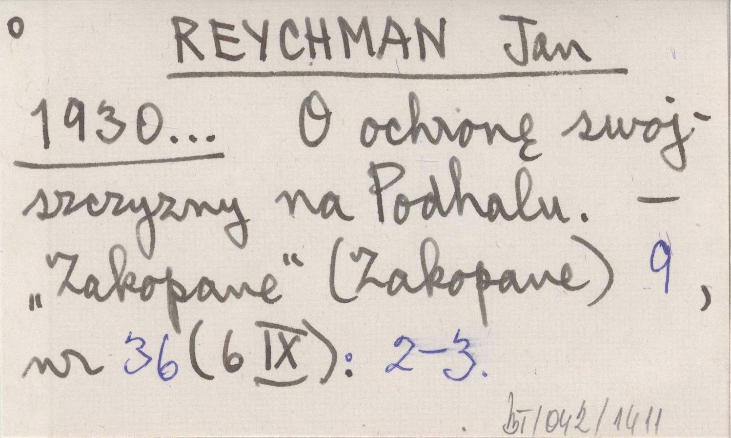REYCHMAN Jan 1930... O ochronę swojszczyzny na Podhalu.