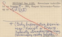 REYCHMAN Jan 1930 Drewniane kościółki na Orawie. (Cechy budownictwa drewnianego. Kościół w Orawce. Kościoły słowackiej części Orawy. Ochraniajmy opieką zabytki.).