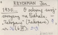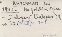 REYCHMAN Jan 1930... Zapomniany badacz Podhala.