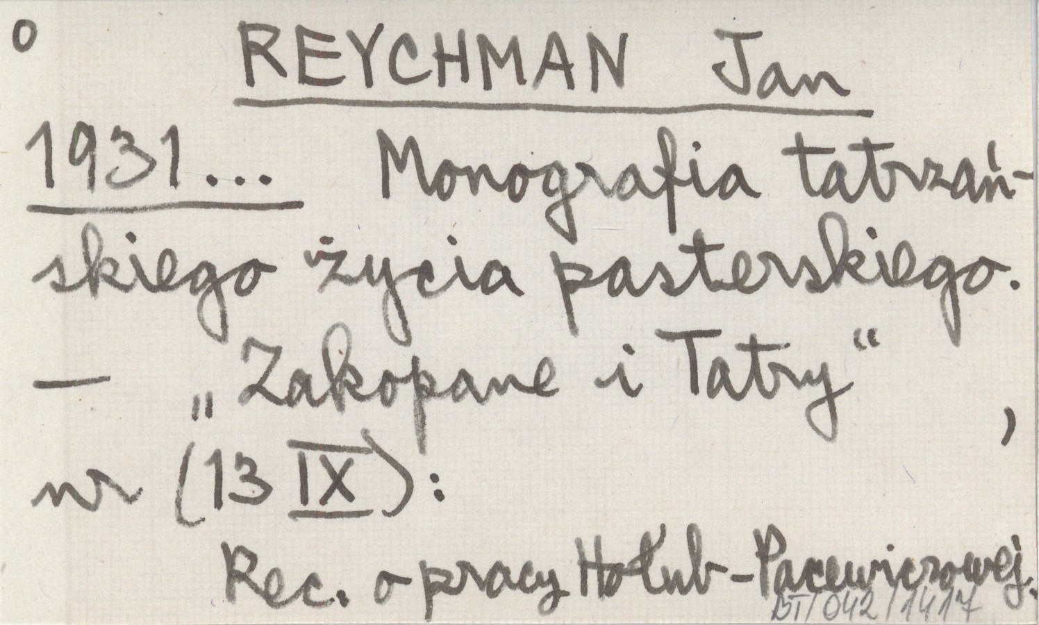 REYCHMAN Jan 1931... Monografia tatrzańskiego życia pasterskiego.