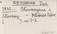 J. R. [REYCHMAN Jan] 1934 Słowacy czy "Czechosłowacy"? Z dziejów osadnictwa w północnej Słowaczyźnie.