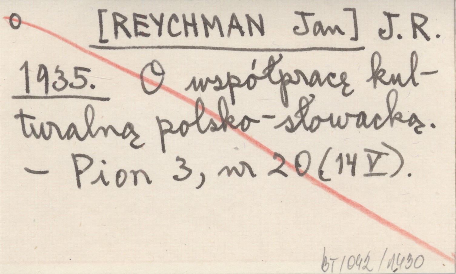 J. R. [REYCHMAN Jan] 1935 O współpracę kulturalną polsko-słowacką.