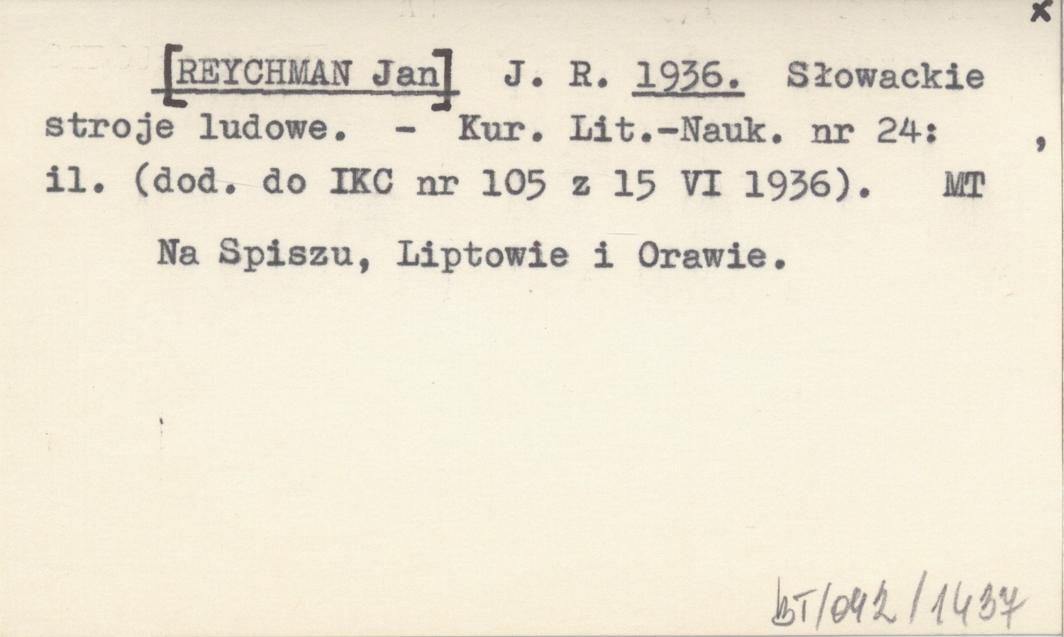 J. R. [REYCHMAN Jan] 1936 Słowackie stroje ludowe.