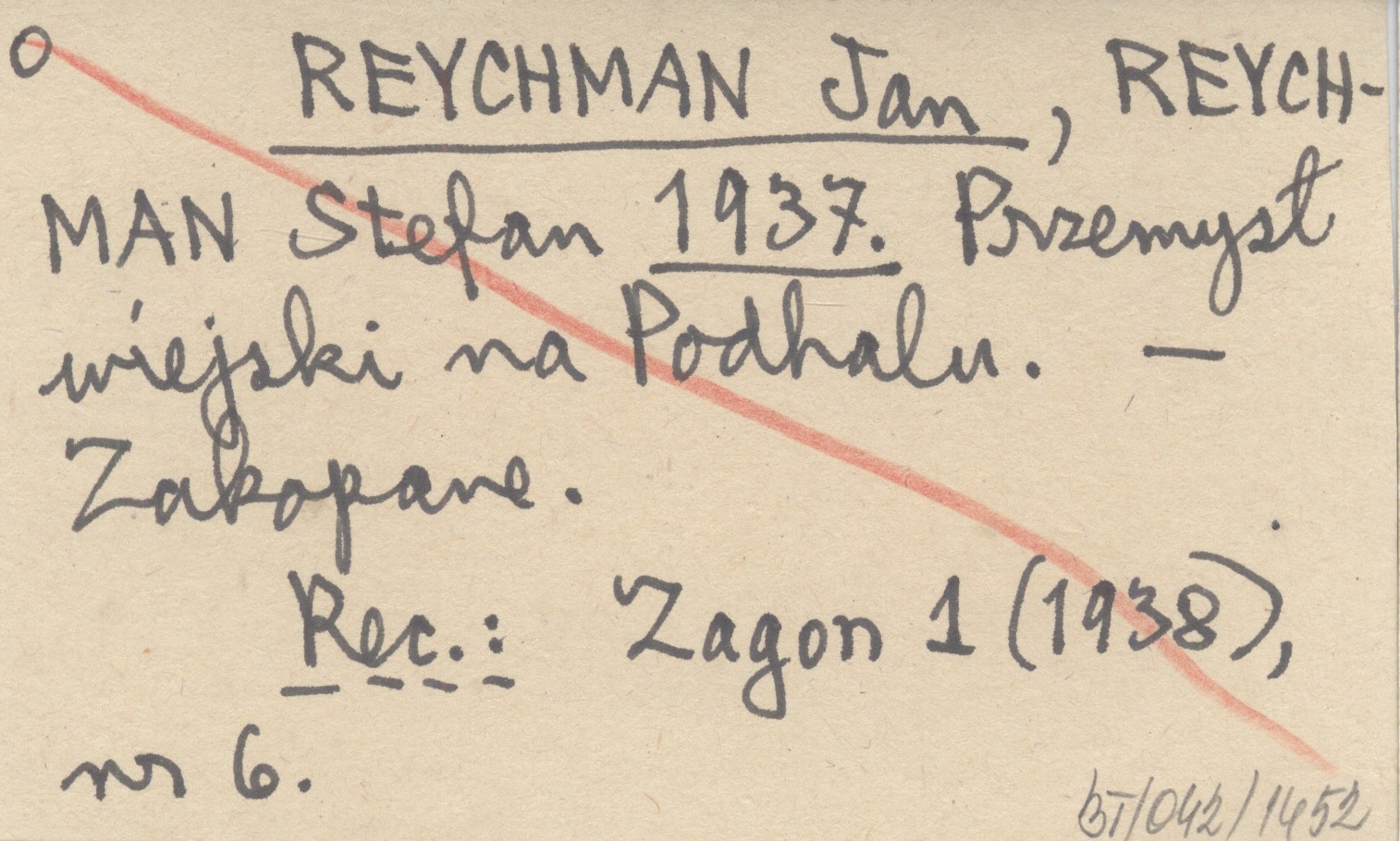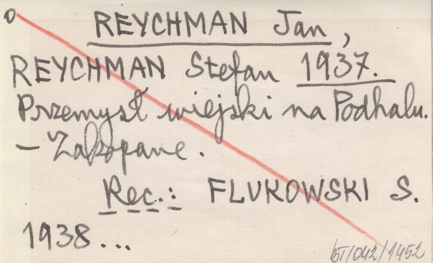 REYCHMAN Jan REYCHMAN, Stefan. ; 1937 Przemysł wiejski na Podhalu.