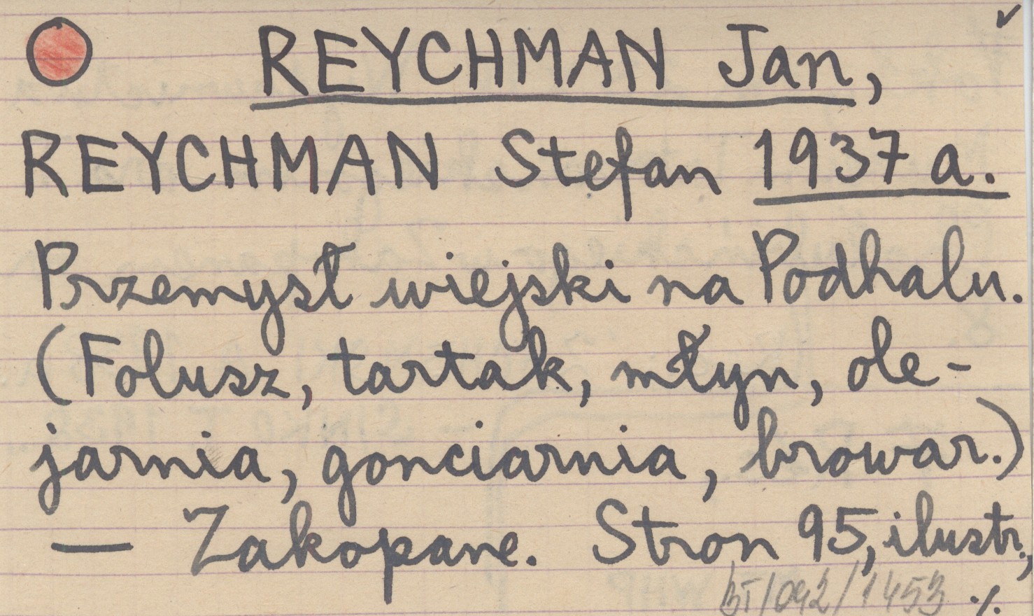 REYCHMAN Jan REYCHMAN, Stefan. ; 1937 a Przemysł wiejski na Podhalu. (Folusz, tartak, młyn, olejarnia, gonciarnia, browar).